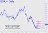 Much as I’d like to put the knock on last week’s rally, it actually looked pretty good — real, almost. In the reverse pattern shown, buyers showed no awareness whatsoever of what we might have viewed as daunting resistance at p=32.44. Thursday’s gap through it all but guaranteed a finishing stroke to D=35.99, but we’ll need to see how buyers handle this Hidden Pivot before we literally buy into the likelihood of a move into the wild blue yonder extending up to early June’s 42.19 peak. This suggests imminent weakness in energy prices that have been holding mining stocks down, perhaps even moreso than the strong dollar. _______ UPDATE (Aug 3, 4:30 p.m.): A pullback to the green line (x=30.66) would trigger an appealing ‘mechanical’ buy, stop 28.87.
