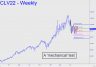 Last week’s rally could provide a crucial test for my bearish outlook, since it triggered an attractive ‘mechanical’ short at the green line after bouncing from a low in the pattern’s sweet spot. The theoretical position was slightly profitable at the bell, but we are paper trading it in any event because the entry risk is about $22,000 on four contracts. To qualify the word ‘attractive’, it implies that a short from 94.24 has a better than 50% chance of producing a profit by falling to p=88.75, at least, before popping above C=99.75 to stop out the position. ________ UPDATE (Aug 31, 11:50 p.m.): So far so good. The futures produced a $22,000 profit on the paper trade with today’s dive to p=88.75. Assuming half the position has been covered, let’s shoot for p2= 83.25 on the third of four contracts shorted. Note the D target at 77.75, which, as noted here earlier, would imply pump prices below $3 gallon. _______ UPDATE (Sep 1, 11:24 p.m.): Use a stop-loss at 91.43 for the two contracts that remain. This should be worked o-c-o with an order to cover one contracts at p2=83.25. _______ UPDATE (Sep 7, 10:16 p.m.): The trade has been a monster, producing one of the biggest gains ever for an explictly actionable tout. The trend forecast itself went sharply against the crowd, with an extremely bearish forecast at a time when most other seers were expecting a run-up to above $100. That said, there has been almost no discussion of the trade, or even of crude oil, in the tradng room, so NYMEX futures will be eliminated from the core list of touts. However, I will still provide coverage of this vehicle and energy proxies on-demand in the trading room.