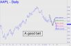 Friday’s close beneath p=150.80 has shortened the odds that the 142.85 target we’ve been using as a worst-case number for the near term will be achieved. A further fall to at least p2=146.82 appears likely in the meantime, while a rally to p=154.77 should be used to get short ‘mechanically’. I will provide more-detailed guidance in the chat room if prompted by your timely interest. If the trade were to be executed conventionally rather than with a ‘camouflage’ trigger, this gambit carries about $1600 of implied entry risk, based on four round lots and a stop-loss just above ‘C’ at 158.75. ______ UPDATE (Sep 27, 5:09 p.m.): The short I explicitly advised above would have been worth at least $1500 to any subscriber who did as suggested. The stage-managed, powerful short squeeze on the opening bar fell a nickel shy of p=154.77, but in practice that would not have made a difference if you used the usual reverse-pattern trigger. The bearish pattern has been working perfectly and the 142.85 target still obtains. ______ UPDATE (Sep 28, 10:22): A further rally to the green line (x=154.84) would trigger a moderately appealing ‘mechanical’ short, but if it’s hit soon we’ll want to be cautious about intercepting such a wicked spike. _____ UPDATE (Sep 29, 11:49 p.m.): We saw yet more evidence today that the stock’s handlers have not yet acclimated to the fierce selling that is sinking their favorite stock. This morning they tried a trick they’ve repeated successfully many scores of times, pulling their bids on the opening bar in order to dry up the selling. This tried-and-true tactic succeeded briefly, but only because the 142.85 Hidden Pivot support given above precisely contained the initial plunge. But it gave way after a couple of hours under a barrage of selling, and even a short-squeeze rally in the final 30 minutes could not lift the stock above the pivot. This is bearish, but we’ll move to the sidelines in any event as DaBoyz do their utmost to keep AAPL from looking like a loser as the week draws to a close.