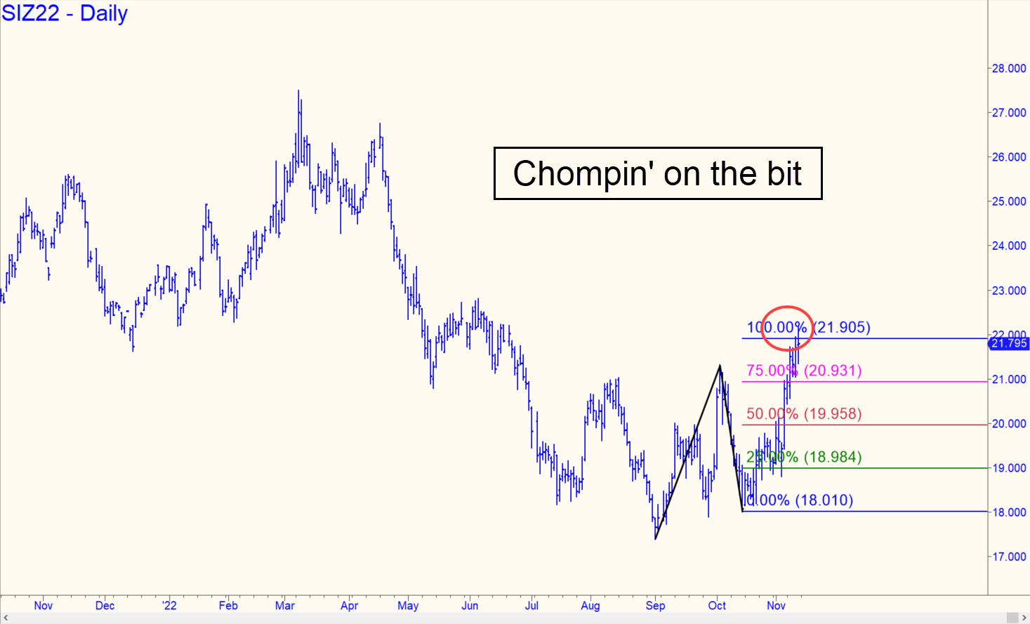 December Silver struggled unsuccessfully all week to punch through a clear Hidden Pivot resistance at 21.905. However, the slight poke above it on Friday, along with the shallow pullback to end the week, suggests buyers are ready to take on an important ‘external’ peak a 22.80 recorded the first week of June. Just above it lies a ‘voodoo’ number where the futures would be an opportune short, albeit only for a tightly-stopped scalp-trade.