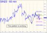 Silver will need more rest after topping pennies from an important Hidden Pivot target at 26.20 target that I’d drum-rolled for the May contract. The corrective target at 24.80 shown may prove to be optimistic, but there’s no harm in using it analytically, since its ability to contain sellers can tell us how much power is behind the downtrend. It has worked already for initiating a ‘mechanical’ short at the green line, and it can also be used to bottom-fish. Caution is advised, however, since the ‘B’ low of the pattern ‘sausaged out’ when it narrowly failed to impulse beneath the April 6 low at 24.91. ______ UPDATE (Apr 23, 6:00 p.m.): The 24.80 target worked nicely, getting within 7 cents of the low of a so-far 61-cent bounce. It seems likely to continue because the bounce overshot the ‘d’ target of a minor reverse pattern.