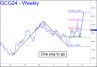 Feb Gold has been the unwitting slave of the bullish pattern show, with a 2250.00 target that has been in play since mid-October. The bounce off last week’s low was encouraging, since the futures managed to finish the week with a gain that left it comfortably above the midpoint of the weekly range. Nasty takedowns are still possible, but $2000 may have become a floor beneath which bulls would swarm thin, insincere offers. _______ UPDATE (Dec 19, 1:47 p.m.): I said in the chat room that Feb Gold would hit 2086, but Martin Armstrong’s cautionary cited in the chat room has reminded me that I should wait for that to happen instead of pretending I have a crystal ball that says it will. The chart is mildly encouraging because the recent high at 2152 impulsively exceeded May’s 2140 peak. That means the subsequent plunge to 1987 was/is corrective. But there are no guarantees that the theoretical buy signal at x=2037 will get the futures to p=2086.4. I do hope this happens, however, since price action at p can tell us a lot about the health and sincerity of the uptrend since October. In theory, the bullish impulsiveness of the weekly chart could survive a plunge all the way down to 1845, even if few bulls would be left standing to cheer it.