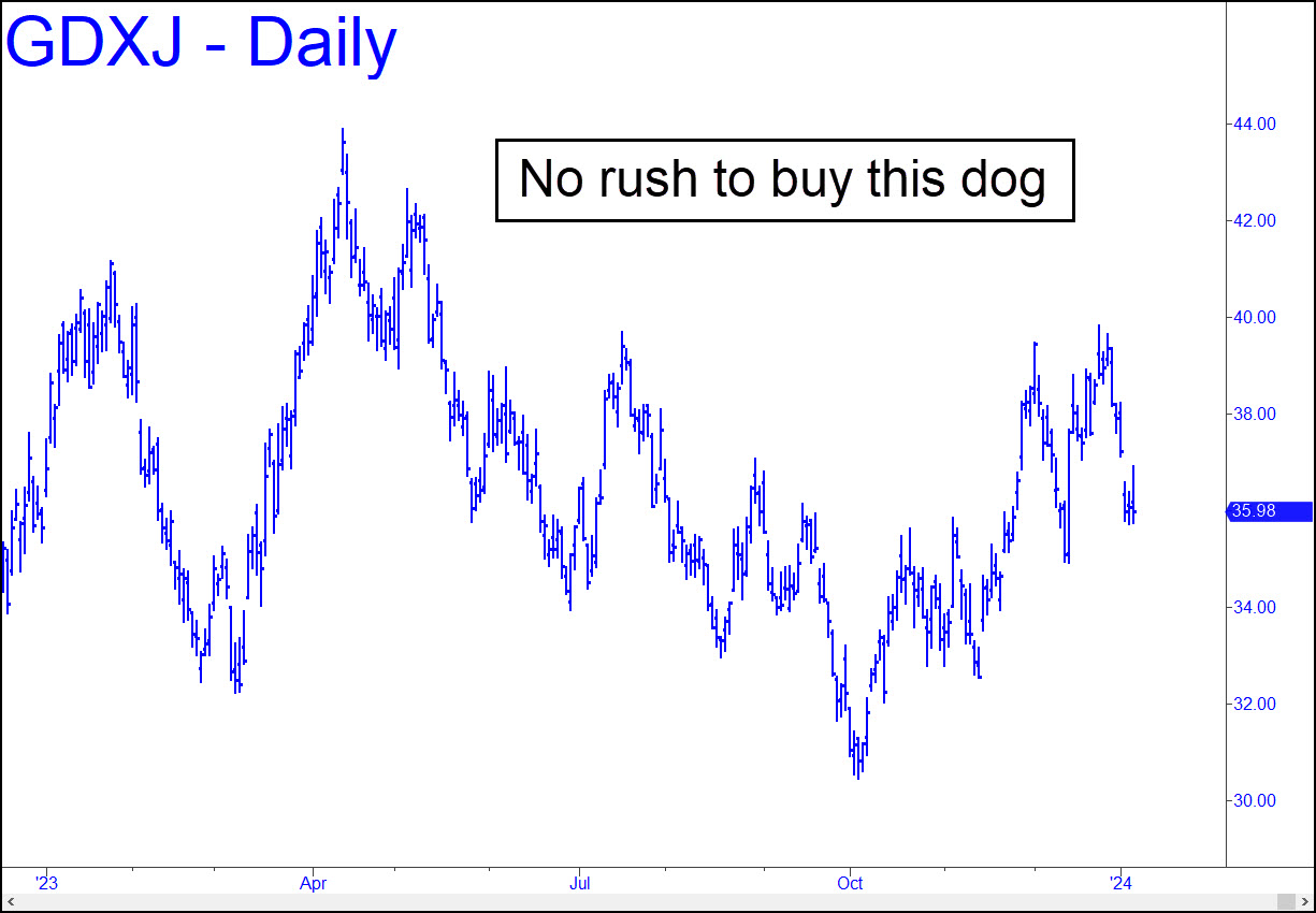 Just a little lower and it will be Katie-bar-the-door time for the buck. Last week’s moderate rally pushed DXY out of the red zone, but the trend will have to exceed the 104.26 peak recorded on 12/8 to become a safe bet, if only for a short while. In retrospect, the failure to push above the 107.99 ‘external’ peak recorded last February foreshadowed problems. Bulls turned timid just when they needed an extra inch of push, and that may have sealed the dollar’s fate over the intermediate term.