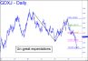 By now, we’ve come to expect little of rallies in this vehicle, and so last week’s so-far modest bounce off a secondary Hidden Pivot at 30.68 is unlikely to arouse much interest. It could run all the way up to the green line (x=36.77) and still be nothing more than a promising short. Thereafter, or perhaps before then, look for GDXJ to turn south, bound for the 27.63 target. The good news is that the pattern is a pretty one likely to produce a targeted low we can trust.