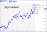 Although the stock has continued to noodle around near a very major target at 430.84, I’m going to focus on the minor pattern shown, with a 439.35 target. It is clear, compelling — and entirely likely to be reached, given Thursday’s gap up through p=426.07. A pullback to x=419.43 should be bought ‘mechanically’, and you can also get short at the target if you’ve held a profitable position on the way up. For now, we’ll pretend the 430.84 target doesn’t exist.