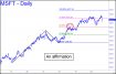 The bullish pattern shown, with a 457.12 target, is unlikely to steer us wrong, given the precise, confirming pullback from p=383.41. It is ambivalent on the question whether D will be reached, however, so we’ll accommodate simply by being prepared for that — or anything else. My gut feeling is that the stock will need to correct further before that could happen, so we’ll look initially for a ‘mechanical’ buying signal on a pullback to p=383.41. The by-the-book stop-loss would be at 358.84. By implication, any rally of 10-25 points should be regarded as an opportunity to get short.