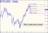 Sellers have crushed a minor Hidden Pivot support near 106k that had looked promising as a place to attempt bottom-fishing, and now the 104,945 midpoint Hidden Pivot support of the large reverse pattern shown. This means the downtrend is very likely to continue to at least d=97,890. Your trading bias should be bearish until that number is reached, but plan on buying there aggressively, especially if you have profited on the way down and have money to cushion a tight stop-loss. You could also try bottom-fishing at p2=101,418, provided you know how to set up a small-pattern trigger to cut the entry risk by perhaps 90% or more.